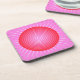 Abstract sunburst design in a bullseye pattern of shaded coral against a deep pink background with silver rays