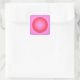 Abstract sunburst design in a bullseye pattern of shaded coral against a deep pink background with silver rays