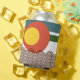 This can cooler has a mid-century modern design of horizontal wavy lines with two circles and two horizontal broad stripes. Want different colours? Message me.