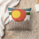 This throw pillow has a mid-century modern design of horizontal wavy lines with two circles and two horizontal broad stripes. Want different colours? Message me.