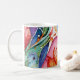This is a Habatour Creations coffee mug, decorated with an authentic modern abstract digital multicolor surface artwork, inspired by flowers
