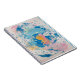 Abstract acryl painting with swirl brush strokes in blue and pink tones.