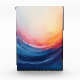 A vibrant and dynamic abstract piece featuring sweeping, brushstroked waves of color. Deep blues and indigos create a sense of depth and coolness at the bottom, merging into a central swirl of vivid pinks, fiery oranges, and reds. The composition is highly kinetic, suggesting the powerful motion of a wave, a cosmic nebula, or pure elemental energy, with a bright, warm light source illuminating the upper center. The textures are rich, suggesting a thick application of paint.