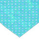 Table runner in an abstract swirl pattern in blue and turquoise, outlined in white, with a soft jade / blue-green background