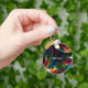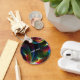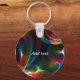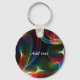 Abstract swirls, multicolored on black background, keychain template. Ready to personalise. Add your own text.