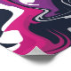 This design features swirling shapes in a cool, bold colour palette, including shades of pink, purple, blue, black, and white. The abstract patterns create a sense of dynamic motion and depth, reminiscent of modern art with a mix of fluid lines and contrasting tones. The colours evoke both vibrancy and calmness, blending a contemporary and artistic feel.