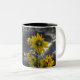 Abstract symbols and yellow flowers Two-Tone coffee mug