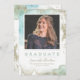 This modern graduation photo announcement features a beautiful abstract teal & gold watercolor background in teal and gold with the word “graduate”and a placeholder for your photo. A gorgeous graduation announcement to celebrate a special milestone!