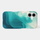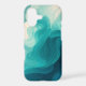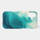 The image features an abstract composition of flowing waves in shades of teal and white. The waves appear to be digitally rendered, with a smooth, flowing texture. The color palette is dominated by cool tones, creating a serene and calming atmosphere. The background is a solid teal color, which contrasts with the lighter shades of the waves.