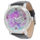 ABSTRACT TEAL BLUE,PINK WAVES,SPARKLES,PURPLE GEM WATCH