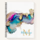 Abstract Teal Pink Gold Inky Marble Monogram Notebook