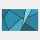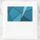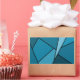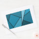 Inspired by stained glass, this stylish geometric design contains polygons in various shades of teal outlined in black. A pale blue-green triangle slashes in from the upper right with an array of progressively darker teal quadrangles and other shapes spiralling around it from light to dark. Two dark greenish-blue shapes ground the left side of the original design.