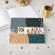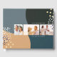 Celebrate your wedding anniversary milestone with our modern, abstract and artistic style multiple photo wedding anniversary guest book. The design features three photo placeholders in a horizontal layout with a modern abstract warm colour palette background and stylish white and navy confetti design. Personalise with years married, couple's name and wedding anniversary date. The reverse side is designed in a clean light beige minimal style with photo in the middle.