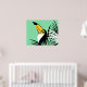 Tropical jungle wildlife art of Toco Toucan on light teal background with palm fronds
