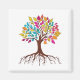 Abstract tree with roots and colourful leaves. Isolated on white background. Flat style.