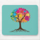 Abstract tree with roots and colourful leaves. Isolated on white background. Flat style.