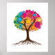 Abstract tree with roots and colourful leaves. poster