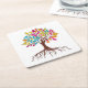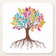 Abstract tree with roots and colourful leaves. square paper coaster