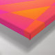 An interesting abstract composition. Geometric triangles and rectangles in colours from a cool sixties colour scheme. Lime green, hot pink, royal purple, tangerine orange, and more. These shapes are tumbling around in every direction giving a sensation of motion and movement. A fun and psychedelic piece.