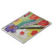 Bright colours and spring flowers, what more can you want?. This cottage garden is blooming with red tulips, yellow, purple and white flowers. The vivid floral pattern is eye-catching and distinctive.