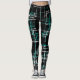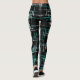 Abstract pattern leggings with random perpendicular lines in turquoise and white that have a splotchy paint stroke look on a customisable black background - by katz_d_zynes