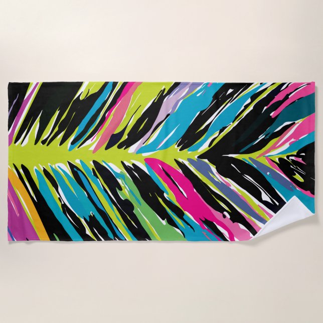 Abstract Vibrant Multicolor Tropical Leaf Beach Towel