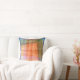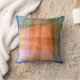 The original abstract design on this 16” Throw Pillow was made from an original photograph by ZoeSPEAK. It suggests a view, through a window, of a landscape. The border is in shades of blue, and the interior is in shades of orange and green with pale yellow and pink highlights. There are linear bands with holes punched in them crisscrossing the design.