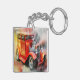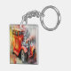 A custom keychain that features an abstract painting of an old vintage car. This item makes a great gift for anyone who's into classic cars.