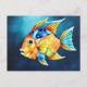 Abstract Watercolor Fish with Bold Geometric Postcard