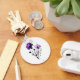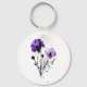 A vibrant and expressive abstract watercolor painting of two blooming flowers. The flowers are rendered in shades of purple and pink, with bold black outlines and splatters adding a dynamic and energetic feel. The overall composition is modern and contemporary.