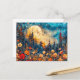 Abstract watercolor illustration of full moon over postcard