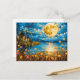 Abstract watercolor illustration of full moon refl postcard