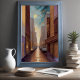 Abstract Watercolor Painting Gold Cityscape Blue Purple Grey The aspect ratio is 2:3. It was designed to be printed as 24"×36", 16"x24", or 20"×30"