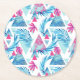 Abstract Watercolor Tropical Leaf Pattern Round Paper Coaster