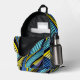 This Abstract Waveform backpack features a captivating design chraacterised by flowing lines and sharp angles that create a sense of movement and rhythm. This geometric pattern combines vibrant colours like deep blue, yellow, and purple, evoking a dynamic energy that draws the eye. Perfect for those who embrace bold styles, the Abstract Waveform backpack is designed for both practicality and flair, making it an excellent choice for daily use or artistic outings. With ample space for essentials, it allows you to express your unique personality while staying organised and stylish.