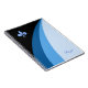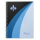 Editable calligraphy, abstract waves in blue shades and fleur de lis Notebook.