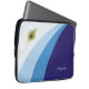 Modern abstract waves in blue shades and peacock feather Laptop Sleeve. Name can be personalised.