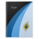Editable calligraphy, abstract waves in blue shades and peacock feather Notebook.