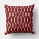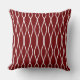 Elegant modern white abstract wavy geometric pattern on maroon Pillow.