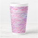 Hand-drawn, abstract pink and light blue wavy pattern.