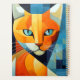 Get this captivating Cubist-style illustration of a stunning orange cat painted in bold, squarish lines against a soothing backdrop of blue-grey hues. This rendering combines artistic innovation with feline elegance.
