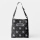 This crossbody bag has a fun, modern design which can be personalised by changing the name and would make a great gift for a girl or woman. The design is abstract with white line art flowers, paint splashes and squiggles on a black background.