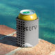 This can cooler has a geometric design made from two scalloped rectangles and a rectangle formed by rows of black dots. If you like the design but prefer different colours, message me.