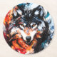 Abstract Wild Spirit Wolf Round Paper Coaster