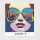 Pretty woman looking a the city skyscape through her sunglasses with a reflection of skyscrapers and city life colourful AI art. generativecontent