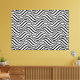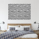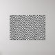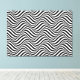Wrapped canvas art is shown with a art print of black and white abstract wave motion.