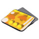 The sleeve is made of nice feeling material and seems very durable. I'm not sure how easy it'll be to clean, but the construction seems sound and the fabric is quick thick. I also like the double zipper. The printing is lovely and appears durable. The white on black contrast is nice, and the design very elegant.