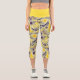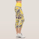 These capri leggings feature an abstract spiral fractal pattern in yellow, black and purple.