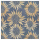 Yellow batik style design of sunflowers on a rich deep blue background.