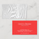 Classic design featuring a grey/white zebra print on one side, and a coral red backside with white text for your contact info. © 1201AM DESIGNS